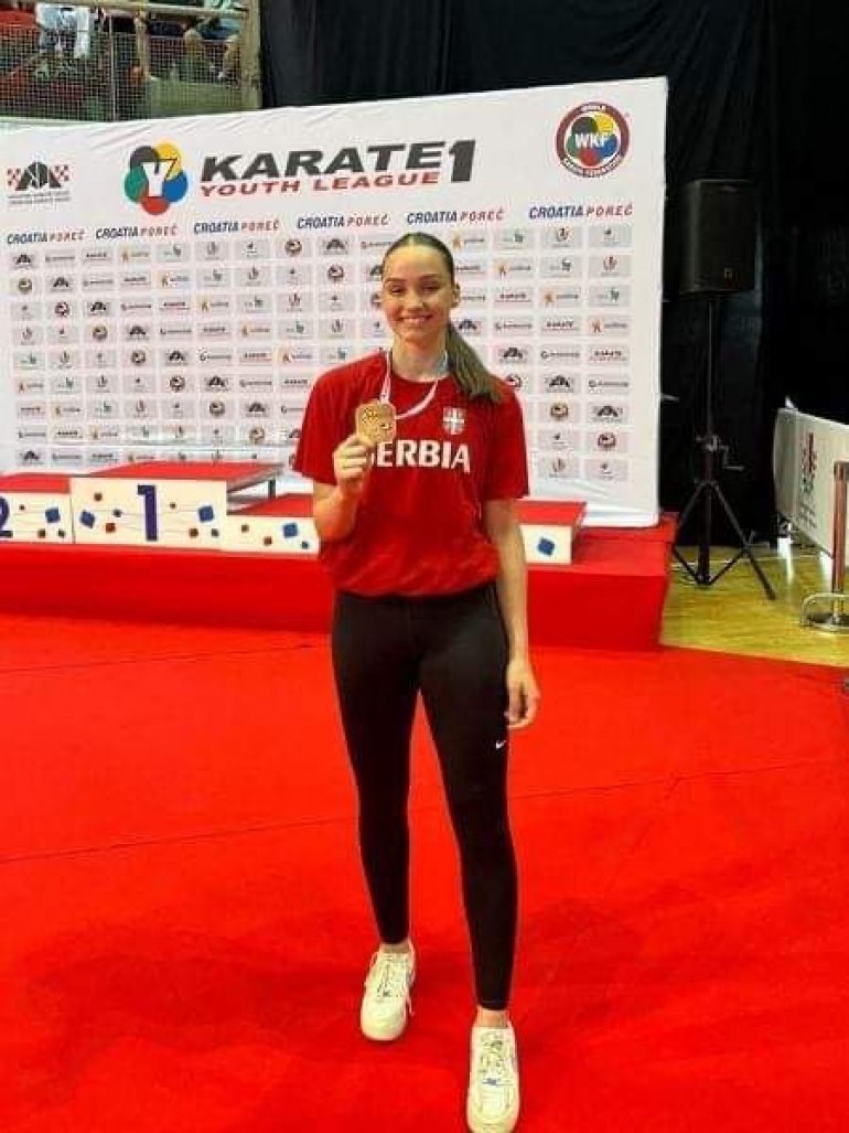 DUNjA Rajić, reprezentativka Srbije i karatistkinja Zadrugara iz Lazareva, na eminentnoj Svetskoj ligi mladih karatista u Poreču, na kojoj je učestvovalo preko tri hiljade takmičara, iz 69 zemalja celog sveta, osvojila je bronzano odličje.