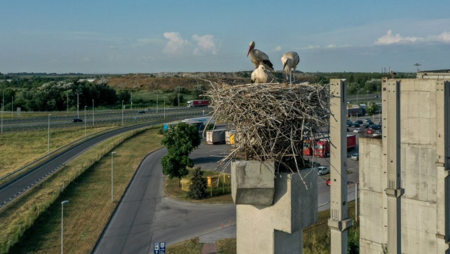 DUGONOGE LEPOTICE SVILE ČAK 52 GNEZDA: U blizini auto-puta kod Novog Sada formirana velika kolonija belih roda na stubovima jednog objekta