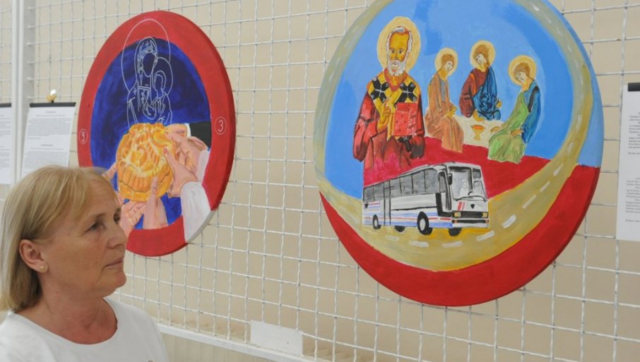 Sliku „Tvj autobus i dalje putuje“ Čedomirka Mioković posvetila je svom suprugu Dušanu nestalom 20. novembra u zapadnoj Slavoniji.
