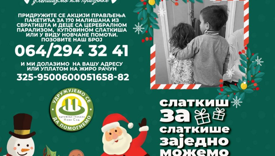 Pozivaju se građani i društveno odgovorne kompanije da se do 15. decembra priključe ovom plemenitom cilju, a zainteresovani koji žele da doniraju slatkiše mogu se javiti na broj udruženja 064 294 32 41 i volonteri će doći da preuzmu.