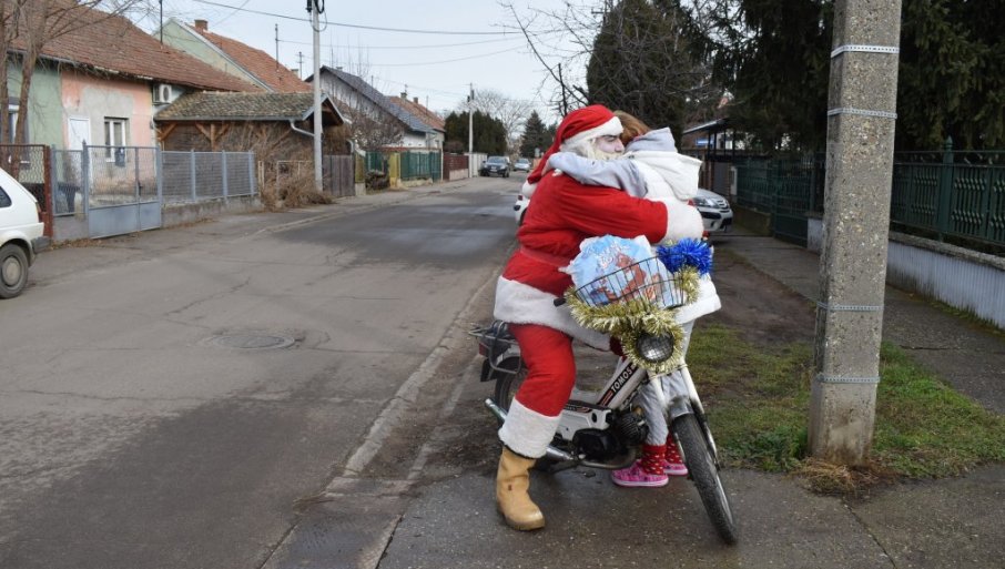 U odelu Deda Mraza došao iz Mokrina do Kikinde da bi devojčici sa posebnim potrebama Maji Marinkov (18) ponovo uručio novogodišnji paketić.