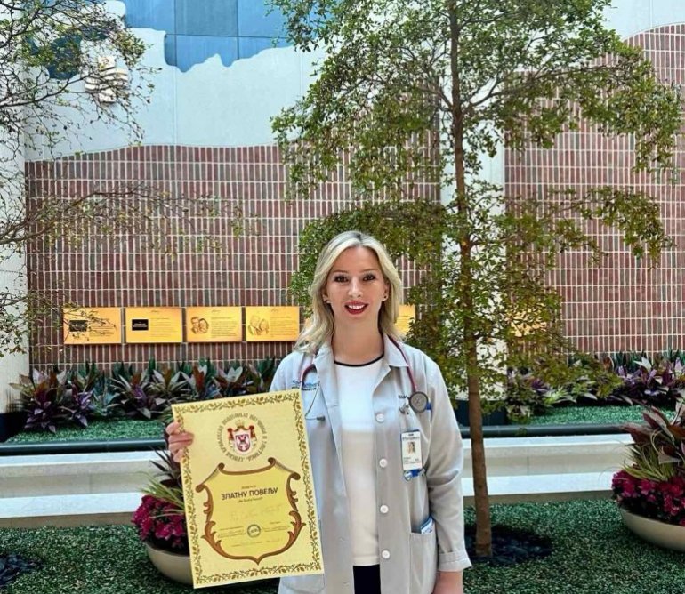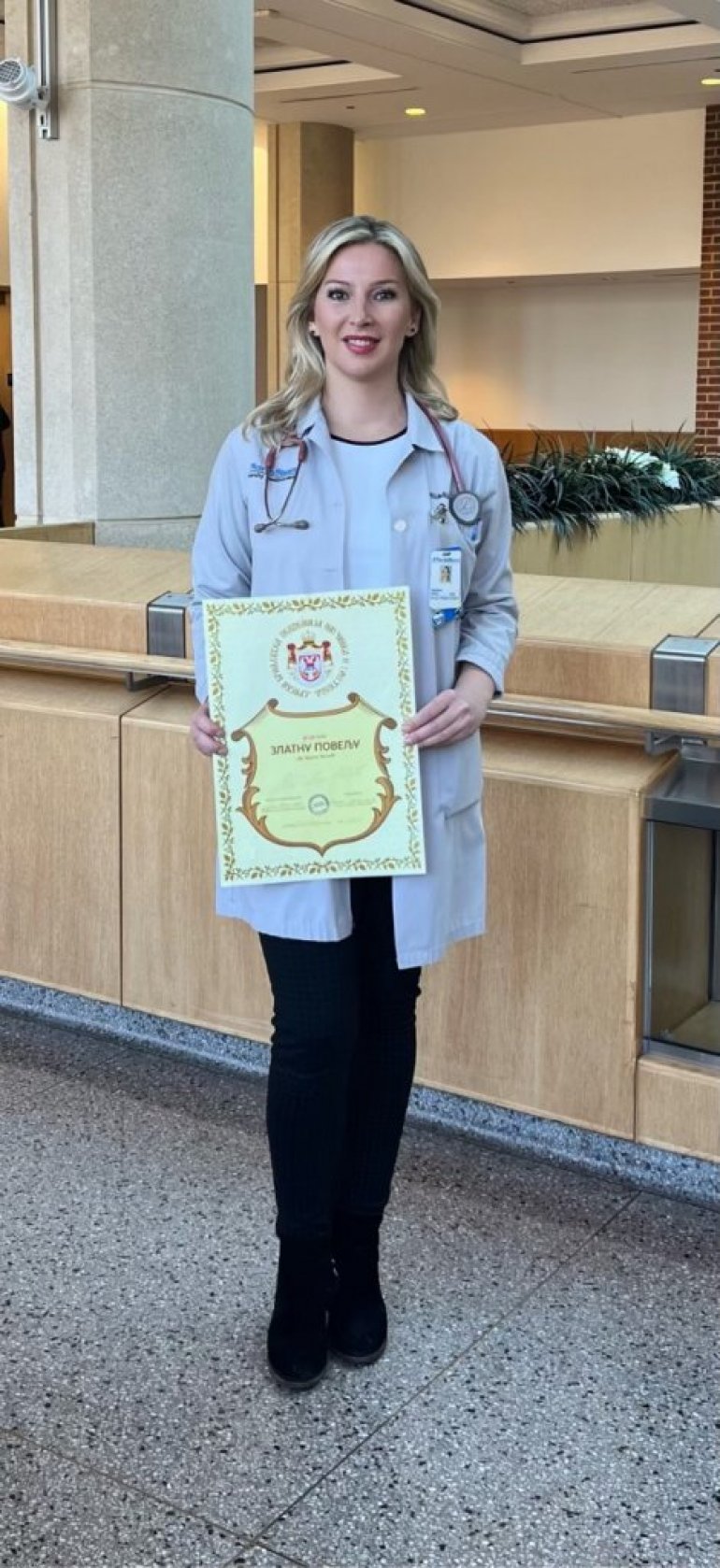 Vest o prestižnoj nagradi brzo se pročula u rodnom kraju, ali i u dalekoj Americi, gde je primila to veliko priznanje, u Čikagu, gradu gde radi, u bolnici Univerziteta North Shore. Zapaženi je i predavač na Čikaškom univerzitetu, koji je jedan od najboljih na svetu.