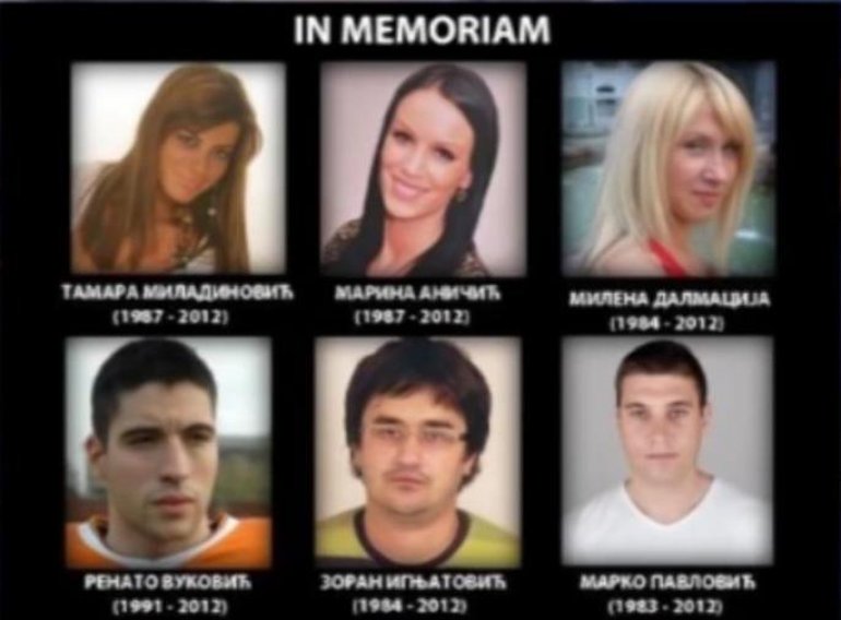 U požaru u diskoteci "Kontrast", koji je, kako je ustanovljeno, uzrokovala preopterećenost električne mreže, poginuli su Tamara Miladinović (25), Marina Aničić (25), Milena Dalmacija (26), Zoran Ignjatović (28), Marko Pavlović (29) i Renato Vuković (21).