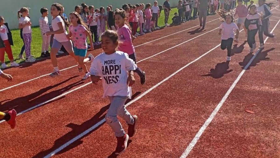 Po sunčanom vremenu i u odličnom raspoloženju učenici mlađih razreda osnovnih škola trčali su takozvanu „Trku za srećnije detinjstvo“, a dodatni motiv bila im je nova atletska staza.