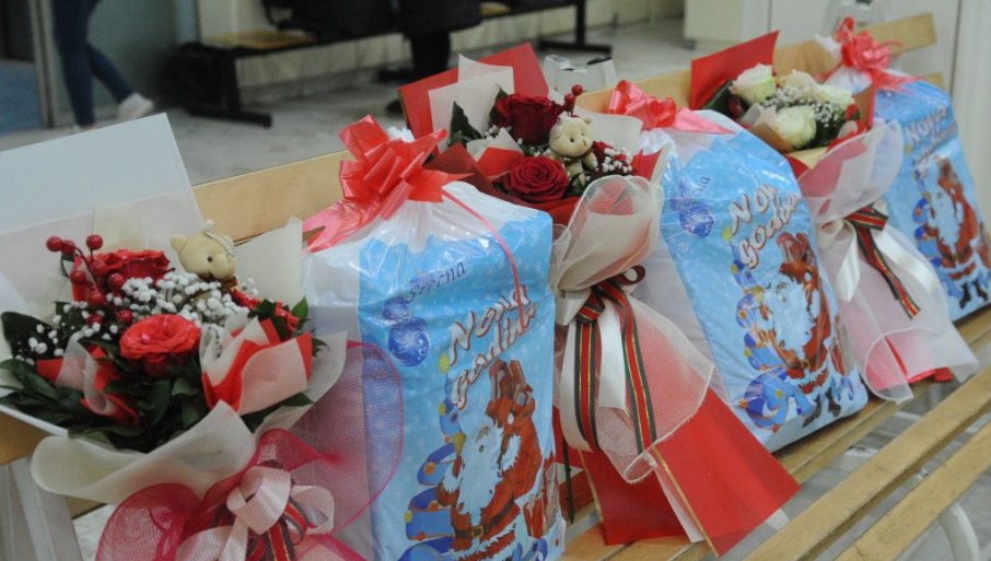 Tako su poklone i bukete cveća ovom prilikom dobile Milica Trenčev koja je na Božić rodila devojčicu Irinu i Danijela Jokić koja je dan kasnije na svet donela devojčicu Selenu, a poklone će dobiti i mama prve sledeće bebe u kraljevačkom porodilištu.