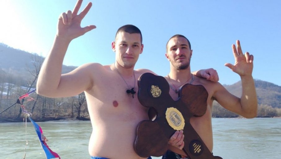 BOGOJAVLJENJE NA DRINI KOD LJUBOVIJE: Zbog visokog nivoa reke nije se plivalo - Časni krst pripao Aleksandru Jovanoviću (VIDEO)