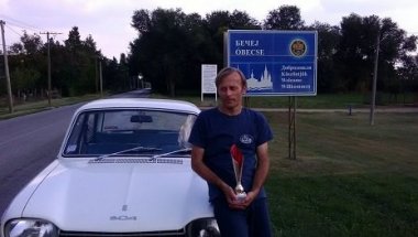 PREDSEDNIK Kluba ljubitelja starovremenskih vozila "Dez Arts oldtajmer klub" u Somboru Dragan Bokun je na Godišnjoj skupštini istovetnog kluba u Bečeju dobi pehar za autentičnost svog vremešnog automobila.