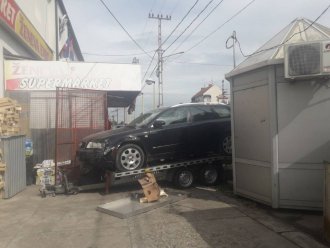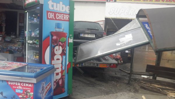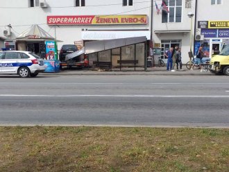 Automobil, koji je izazvao rizik, bio je na prikolici za šlepanje.Verovatno što nije bio dobro pričvršćen spao je sa šlepa i, praktično, sa druma preko stajališta uleteo na kiosk.