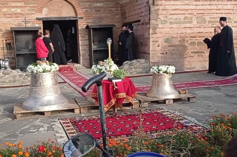 Tu su u porti ispred manastira osveštana tri zvona za nedavno obnovljenu severnu kulu ove svetinje.