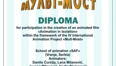 Takođe, vranjskoj školi pripala i diploma za učestvovanje u stvaranju animiranog filma zajedno sa dvadesetak studija iz sveta u okviru međunarodnog projekta „Animacija u izolaciji“ u okviru kojeg je svaki studio animirao strofu ruske pesme.