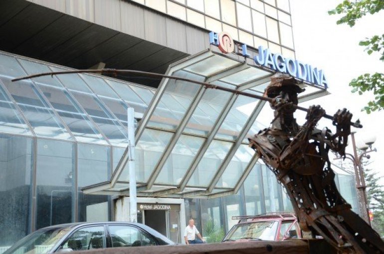 PECAROŠ, izrađen od delova recikliranog gvožđa i postavljen 2014. godine ispred hotela Jagodina, ostao je bez pecarskog štapa.