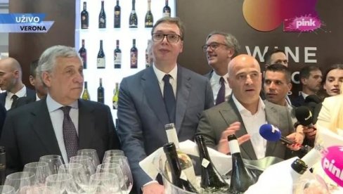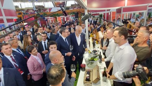 PREDSEDNIK Srbije Aleksandar Vučić prisustvuje otvaranju Trećeg međunarodnog sajma vina, hrane, rakije i turizma “Vinska vizija Otvorenog Balkana“.
