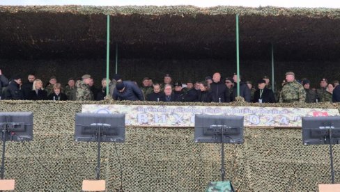 PREDSEDNIK Srbije Aleksandar Vučić prisustvovao je danas je združenoj taktičkoj vežbi sa bojevim gađanjem Vojske Srbije „Vihor 2024“. Na vežbi je učestvovalo više od 2.000 pripadnika Vojske Srbije i oko 350 sredstava ratne tehnike.