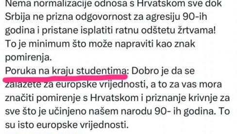 MAHANJE I OSMESI ZA PRIZNAVANJE "AGRESIJE": Studenti blokaderi iz Srbije pozdravili govor Hrvata Bartulice u EP, koji je napao našu zemlju