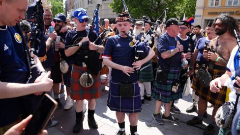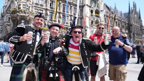 Više desetina navijača Škotske okupilo se večeras u centru Augsburga ispred hotela "Maksimilijan", u kojem je reprezentacija Srbije i skandiraju: "Pobedite Englesku, molimo vas".