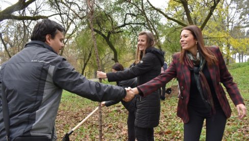 VUJOVIĆ U LESKOVAČKOM SELU MILANOVO: Zajedno sa građanima zasadila četinare
