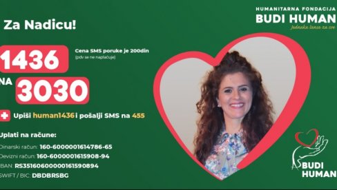 Nadica Stošić iz Vranja uspela je da prikupu novac za terapiju u Moskvi kojojm je zaustavila progresiju multiplaskleroze. Sada joj je potrebna pomoć da nastavi operovak, za šta se ponovo prikuplja novac preko fondacije Budi human.