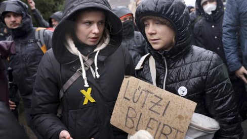 GRETA TUNBERG PONOVO SA LISICAMA NA RUKAMA: Sa demonstrantima blokirala jednu od prestoničkih raskrsnica