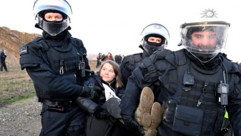 ŠVEDSKA klimatska aktivistkinja Greta Tunberg privedena je danas popodne u Briselu nakon što su ona i grupa drugih demonstranata blokirale raskrsnicu.