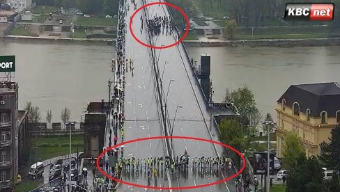 GRUPA od nekolicine demonstranata prešla je danas Brankov most iz pravca Novog Beograda i izazvala totalni haos.