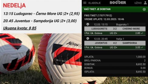 REDAKCIJA "TIP"-a je za svoje čitaoce spremila dva predloga koja donose lepu ukupnu kvotu, a uslov je da "padnu" barem dva gola u prvih 45 minuta.