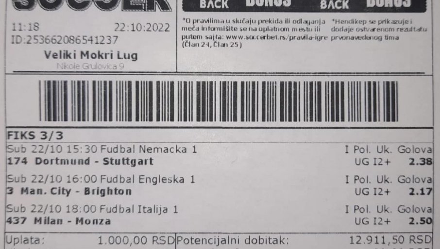 Današnji "tiket za ljubitelje brze isplate" možete pogledati OVDE