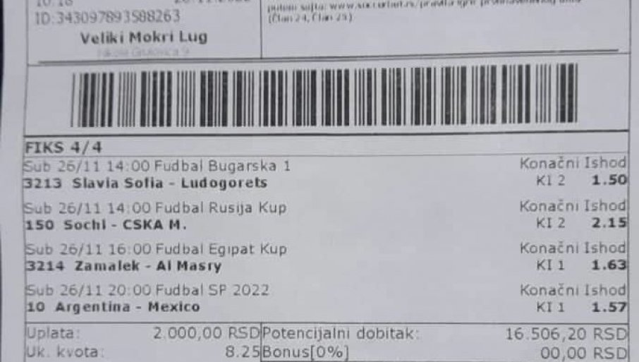 U petak smo pogodili tiket za "ljubitelje brze isplate" sa kvotom 6,74 koji možete pogledati OVDE.