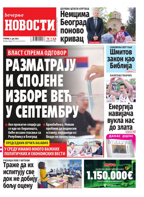 Večernje novosti - Naslovna strana - Štampano izdanje za 06.06.2023.