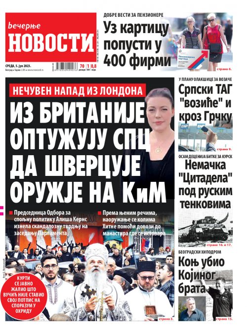 Večernje novosti - Naslovna strana - Štampano izdanje za 05.07.2023.