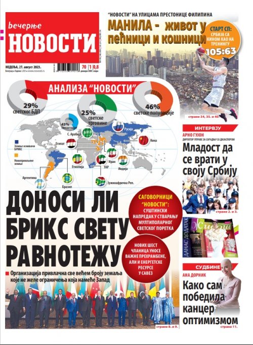 Večernje novosti - Naslovna strana - Štampano izdanje za 27.08.2023.