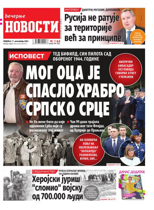 Večernje novosti - Naslovna strana - Štampano izdanje za 17.09.2023.
