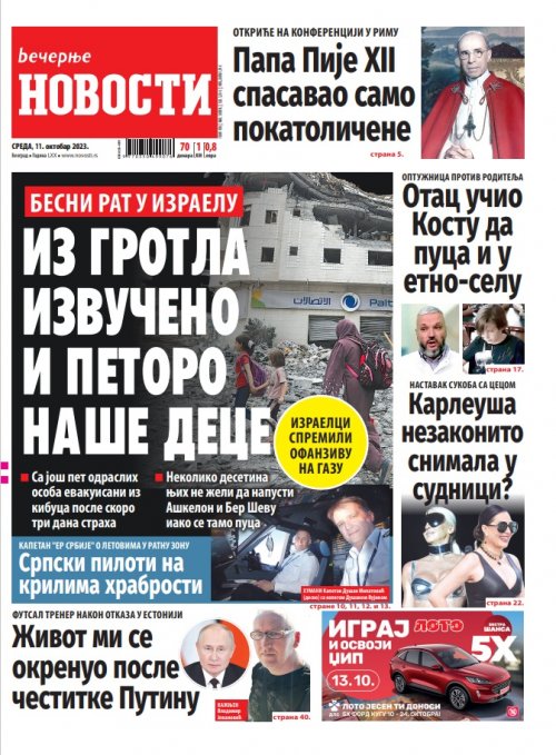 Večernje novosti - Naslovna strana - Štampano izdanje za 11.10.2023.