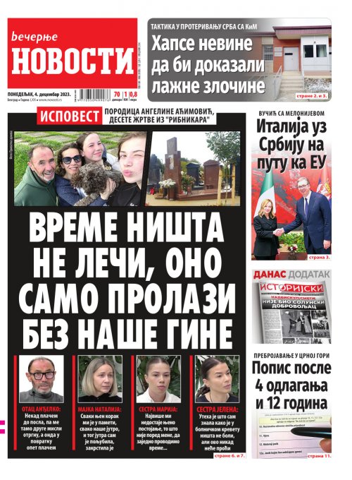 Večernje novosti - Naslovna strana - Štampano izdanje za 04.12.2023.