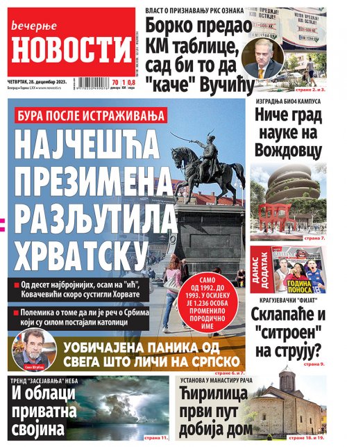 Večernje novosti - Naslovna strana - Štampano izdanje za 28.12.2023.