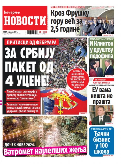 Večernje novosti - Naslovna strana - Štampano izdanje za 03.01.2024.