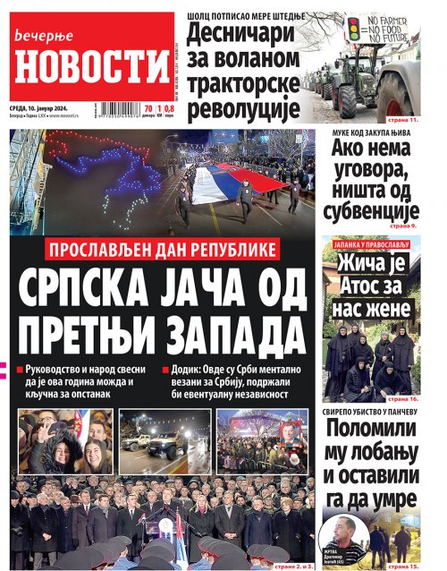 Večernje novosti - Naslovna strana - Štampano izdanje za 10.01.2024.