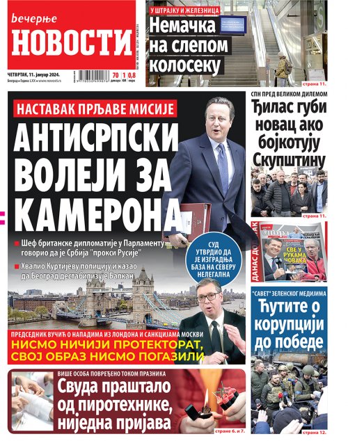 Večernje novosti - Naslovna strana - Štampano izdanje za 11.01.2024.