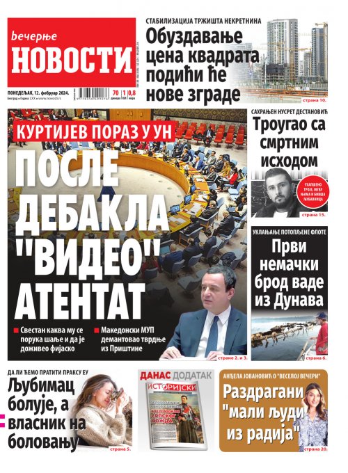 Večernje novosti - Naslovna strana - Štampano izdanje za 12.02.2024.