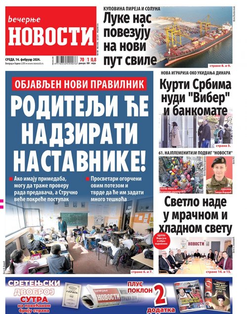 Večernje novosti - Naslovna strana - Štampano izdanje za 14.02.2024.