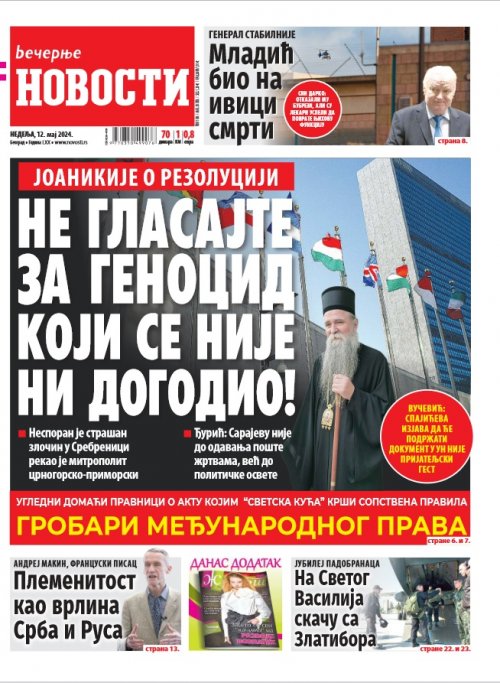 Večernje novosti - Naslovna strana - Štampano izdanje za 12.05.2024.