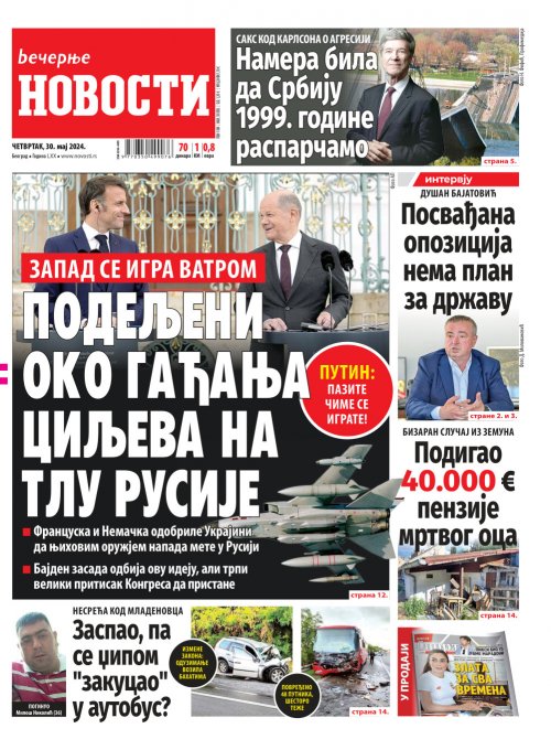 Večernje novosti - Naslovna strana - Štampano izdanje za 30.05.2024.