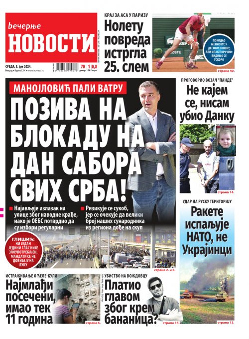 Večernje novosti - Naslovna strana - Štampano izdanje za 05.06.2024.