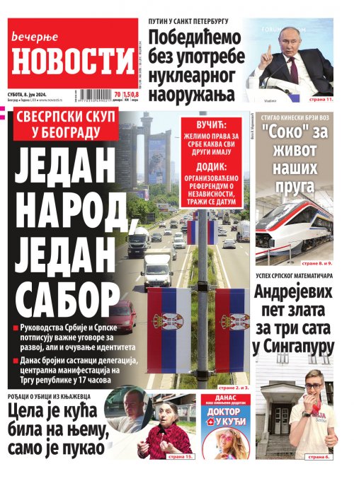 Večernje novosti - Naslovna strana - Štampano izdanje za 08.06.2024.