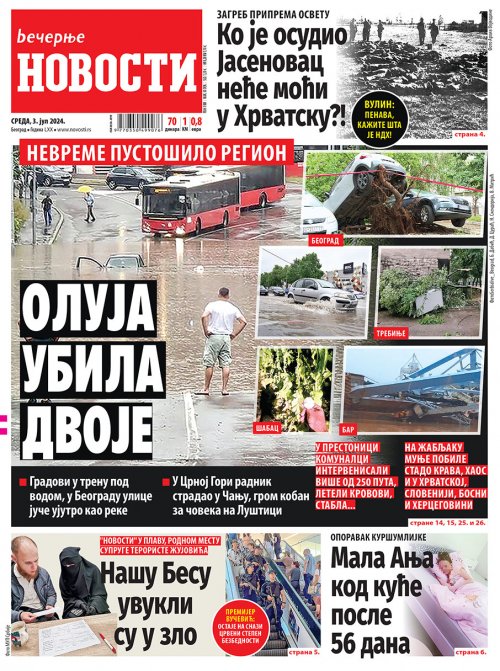 Večernje novosti - Naslovna strana - Štampano izdanje za 03.07.2024.