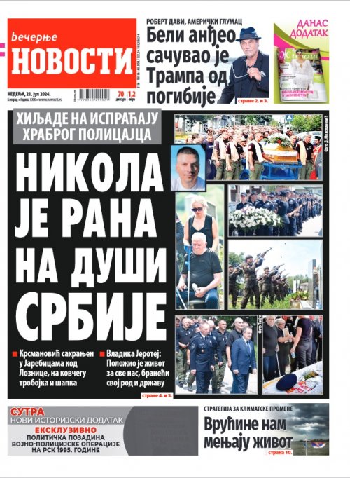 Večernje novosti - Naslovna strana - Štampano izdanje za 21.07.2024.