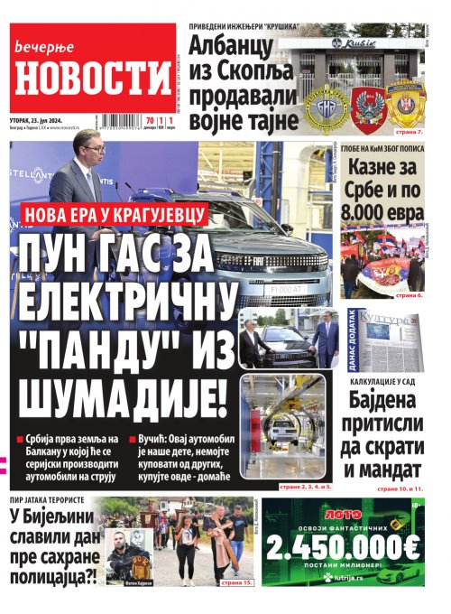 Večernje novosti - Naslovna strana - Štampano izdanje za 23.07.2024.