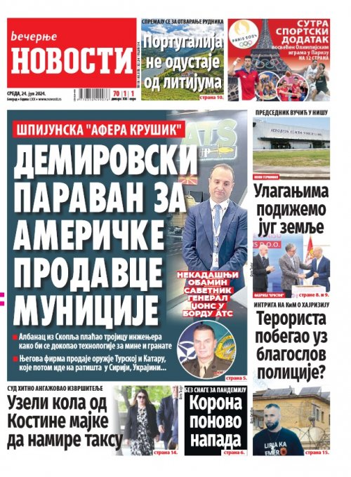 Večernje novosti - Naslovna strana - Štampano izdanje za 24.07.2024.