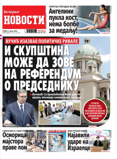 Večernje novosti - Naslovna strana - Štampano izdanje za 03.08.2024.