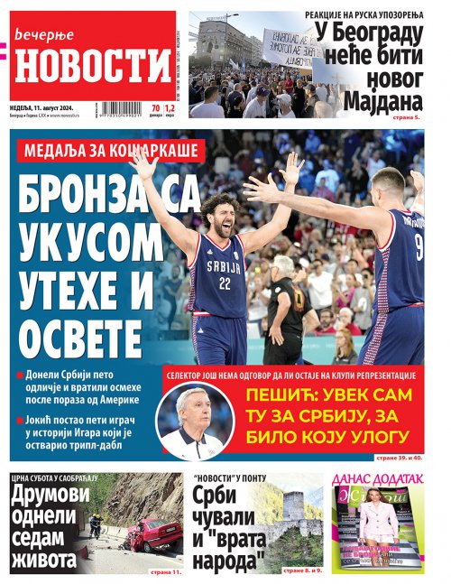 Večernje novosti - Naslovna strana - Štampano izdanje za 11.08.2024.
