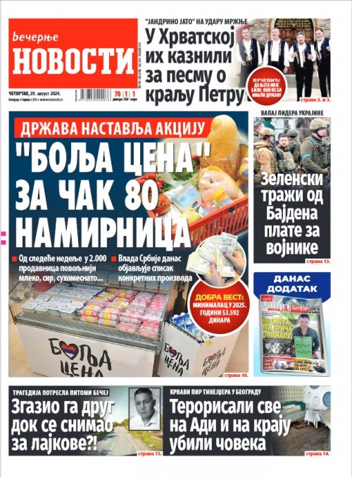 Večernje novosti - Naslovna strana - Štampano izdanje za 29.08.2024.